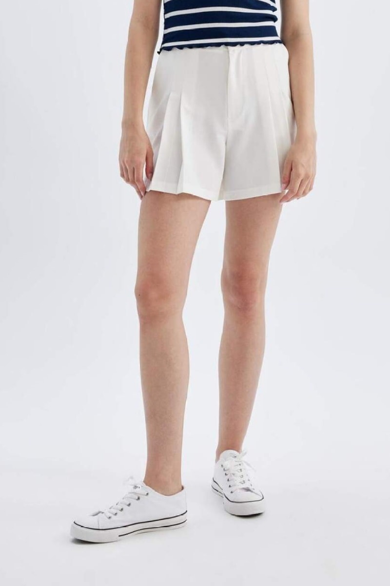 Calções regular cintura subida - Branco