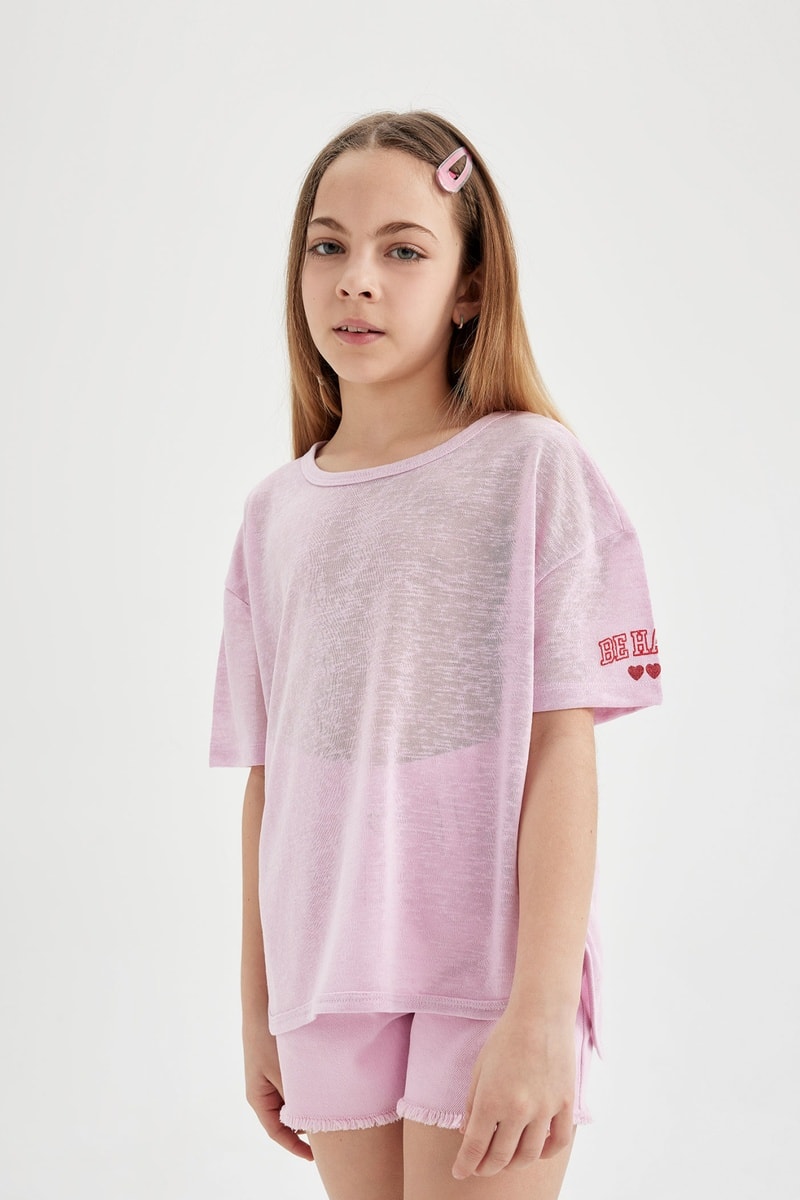 O modelo mede 127 cm e veste o artigo no tamanho 8/9 anos.