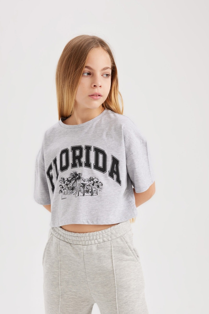 Inscrição e estampado decorativo à frente.