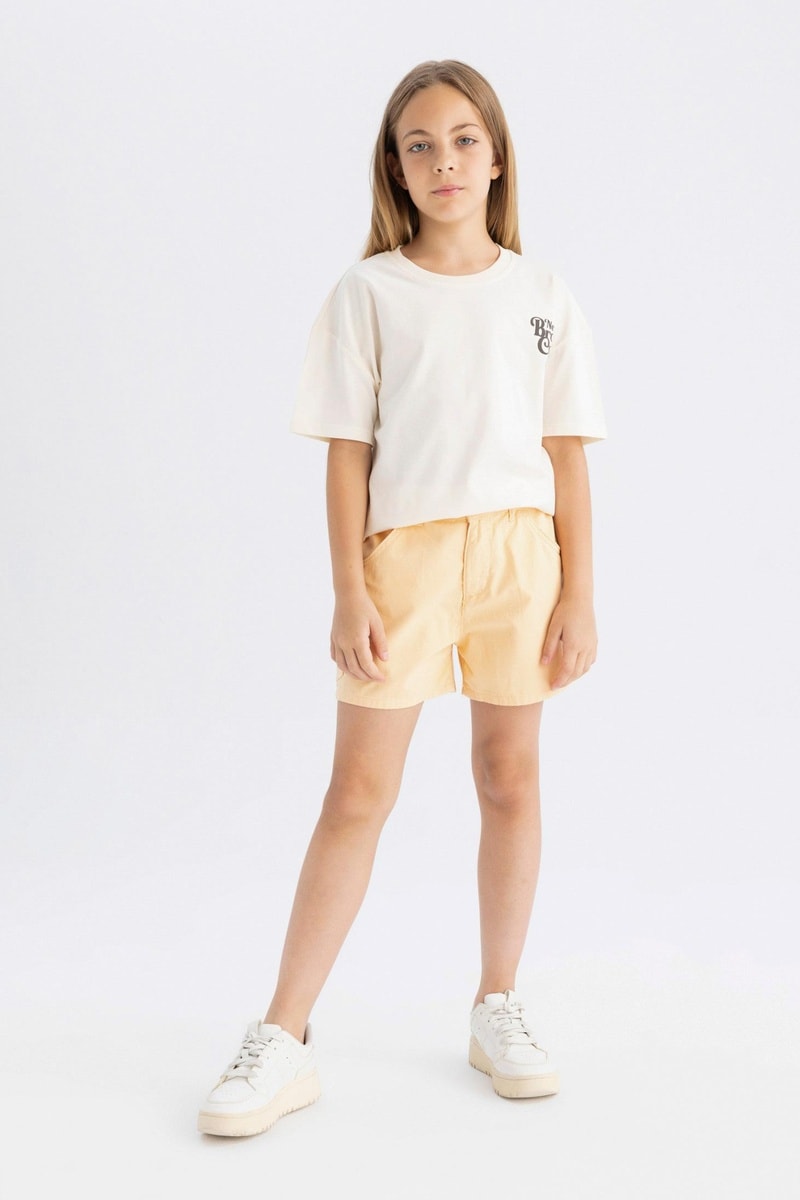 O modelo mede 136 cm e veste o artigo no tamanho 8/9 anos.