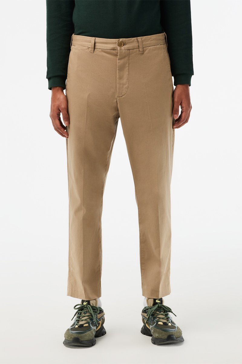 Calças chino tapered em algodão biológico misturado.