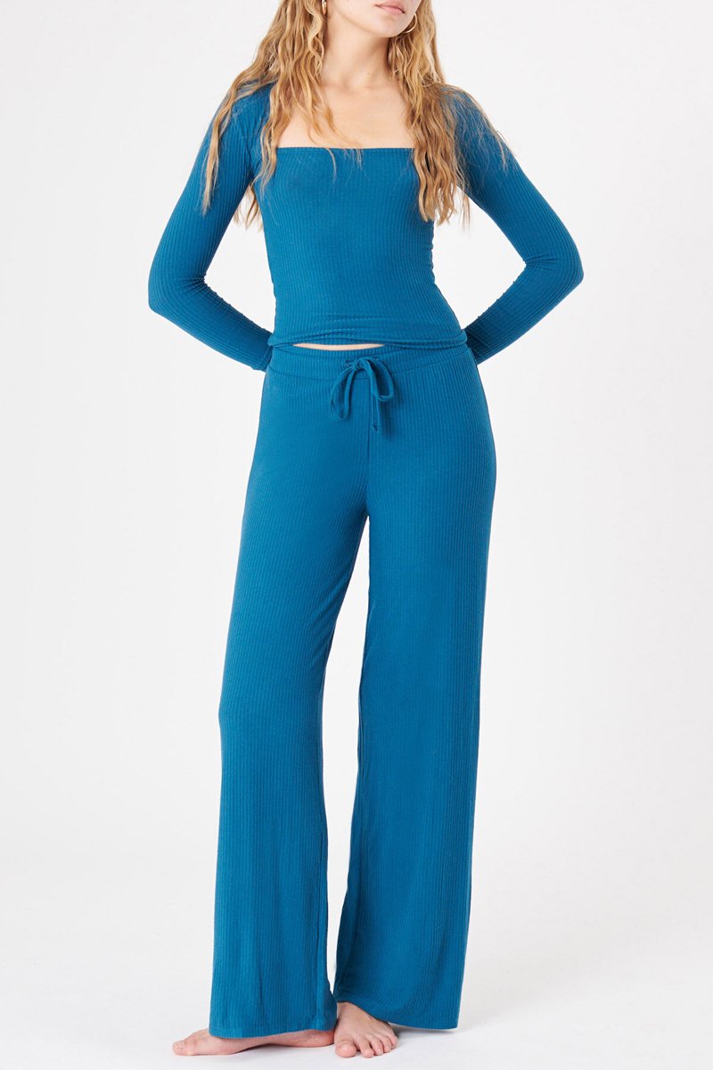 Calças wide legs de cintura subida Newbasiciz - Azul-pato - Undiz