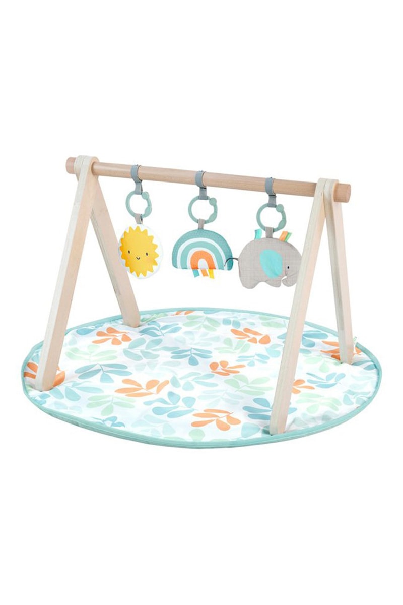 O tapete de atividades vai à máquina e os brinquedos são fáceis de limpar com uma toalhita.