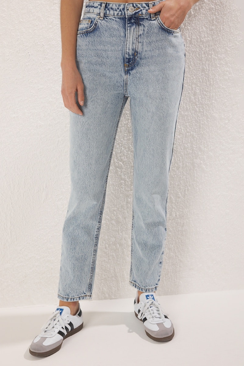 Calças de ganga mom - Azul-claro