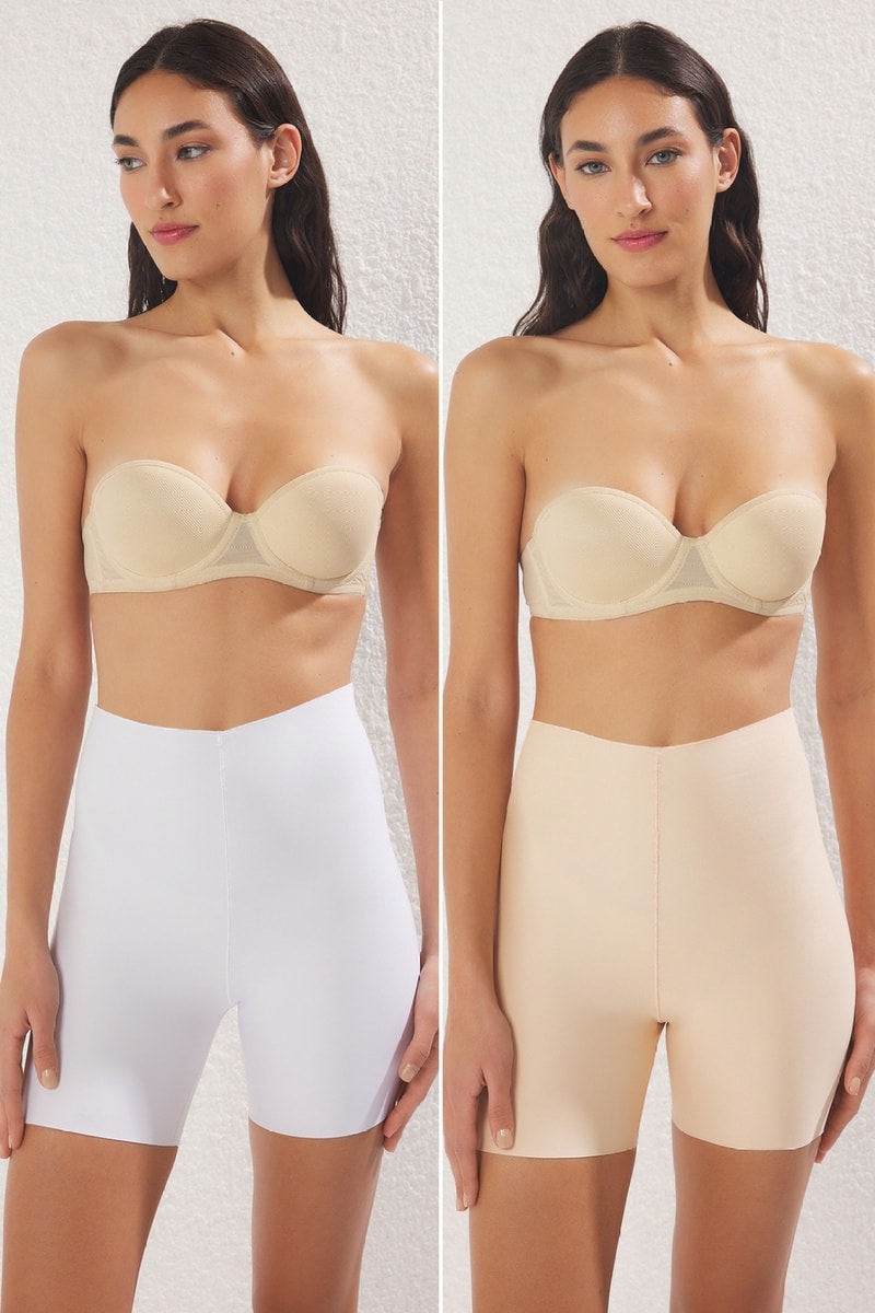 2 panties de cintura alta - Bege e branco