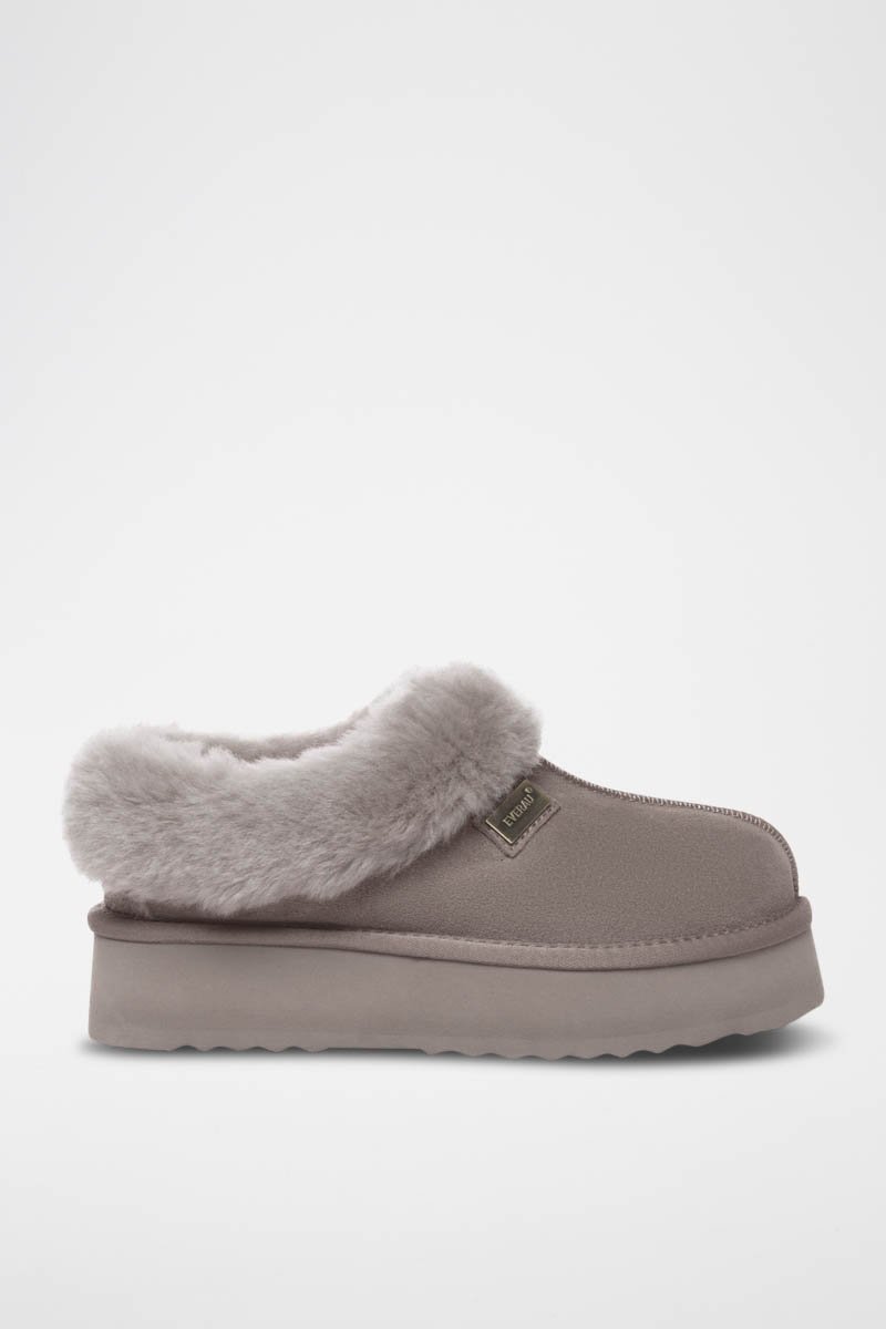 Chinelos de quarto forrados com plataforma em nobuck Topknot - Castanho