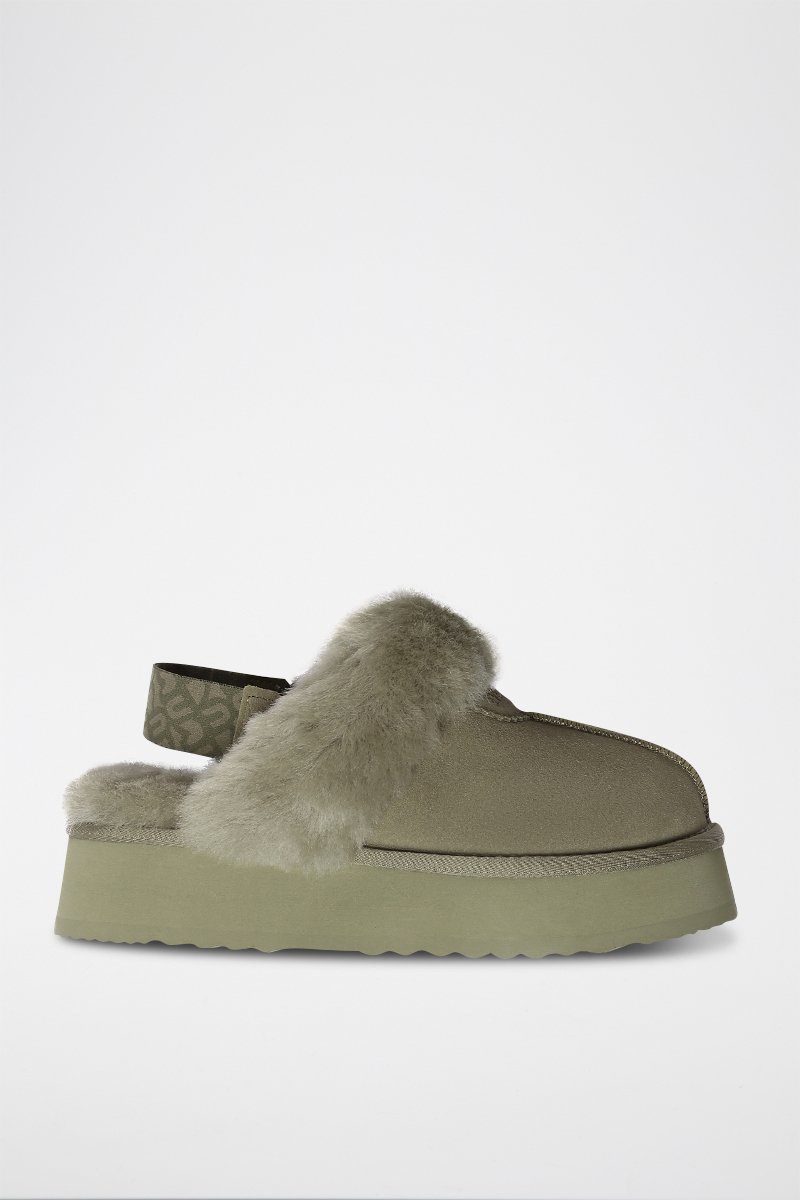 Pantufas forradas com plataforma em nobuck Wagtail - Cinzento