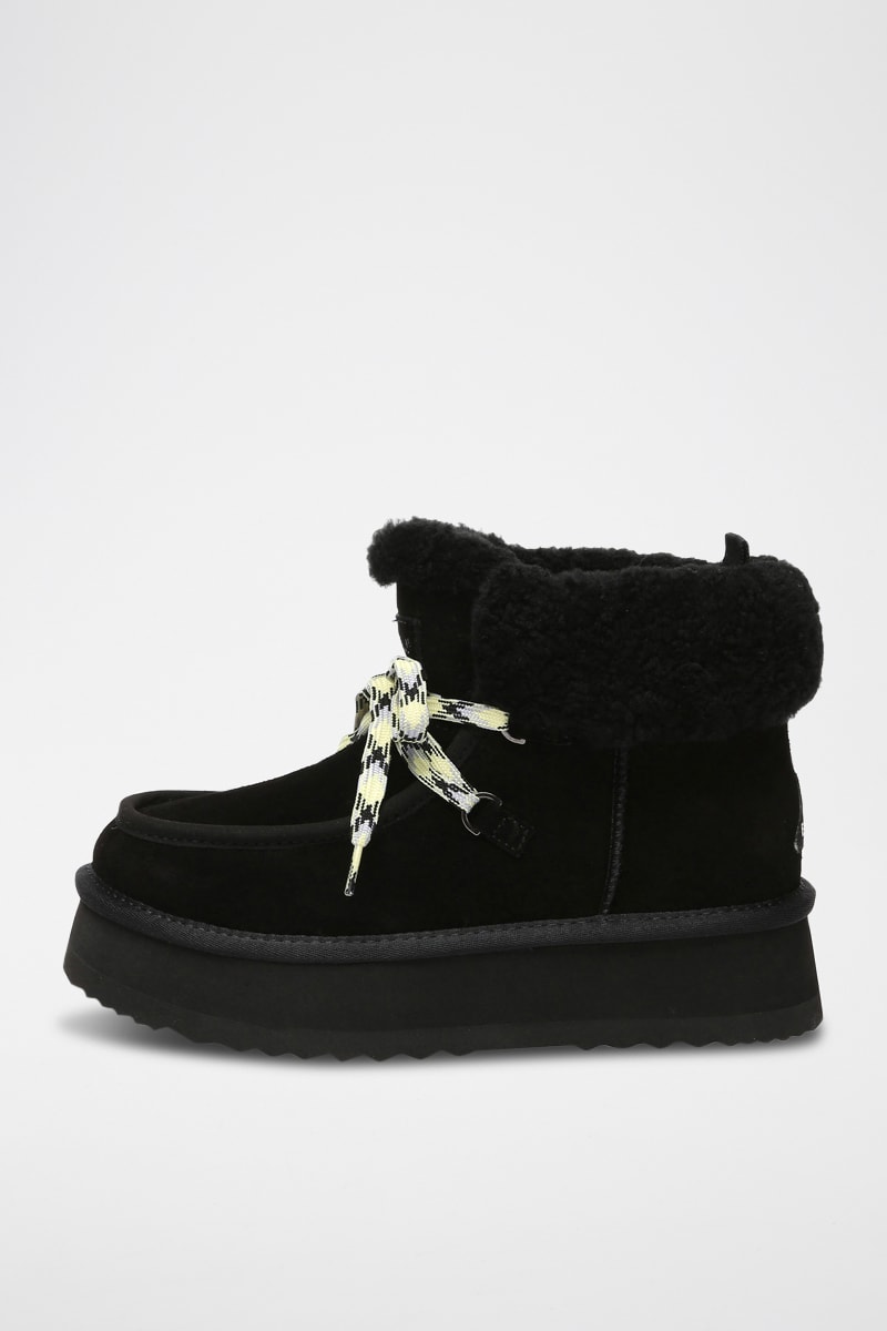 Botins forrados com plataforma em nobuck Lapwing - Preto