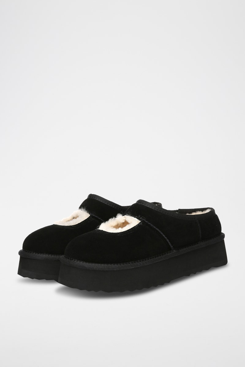Socas forradas com plataforma em nobuck Plumed - Preto