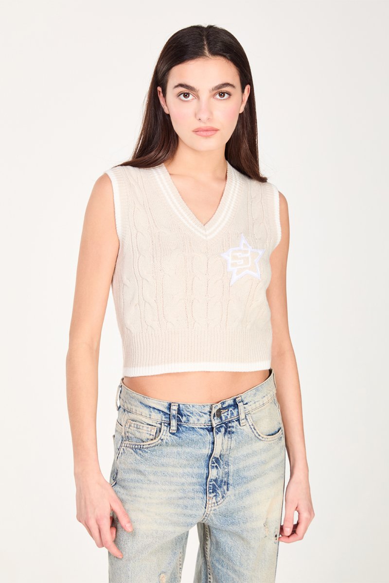 Camisola curta sem mangas - Creme