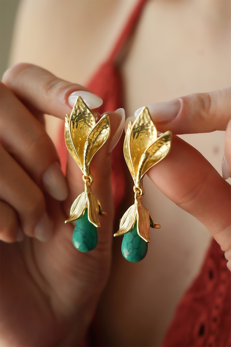 Brincos pendentes com uma variscite.