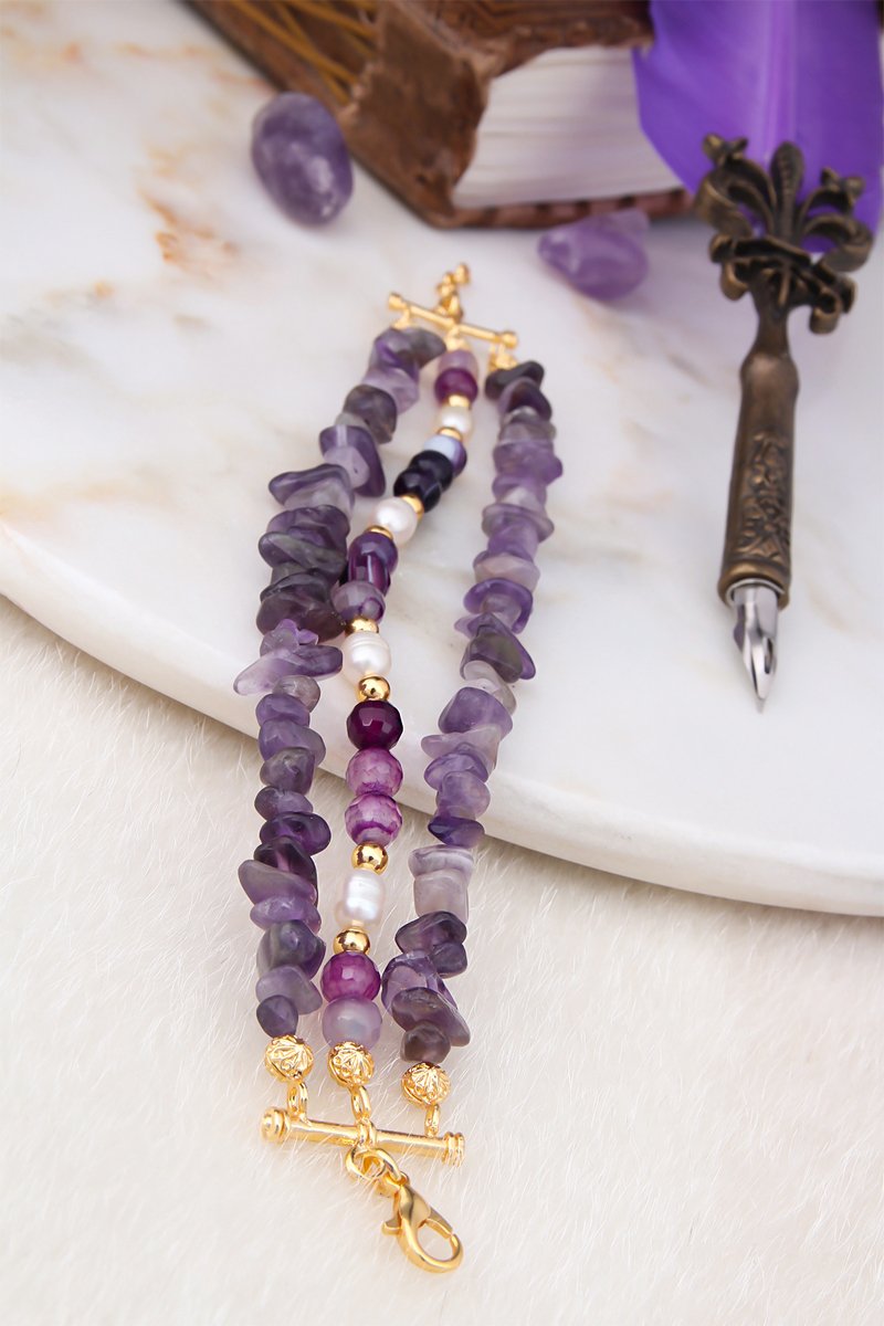 Pulseira folheada a ouro fino amarelo com uma ametista.