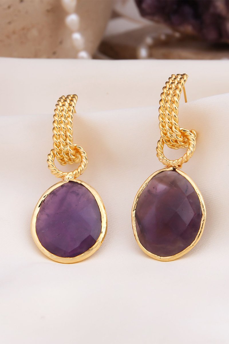 Brincos pendentes banhados a ouro amarelo com ametista.
