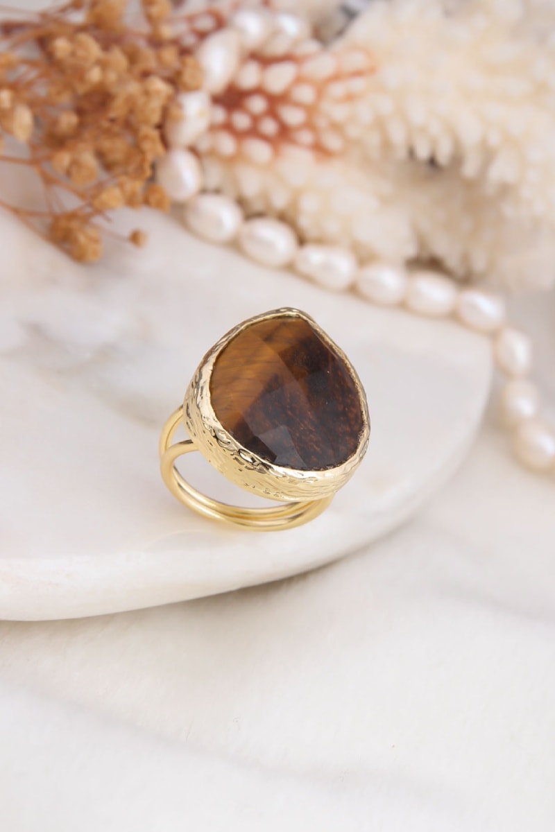 Anel - Banhado a ouro amarelo e olho de tigre