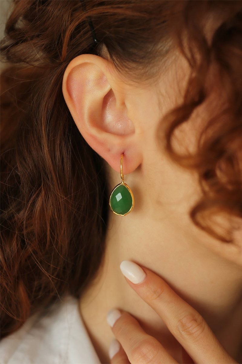 Brincos banhados a ouro amarelo com um olho-de-gato.