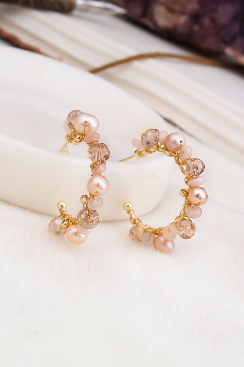 Argolas banhados a ouro amarelo com pérolas de cultura e cristais.