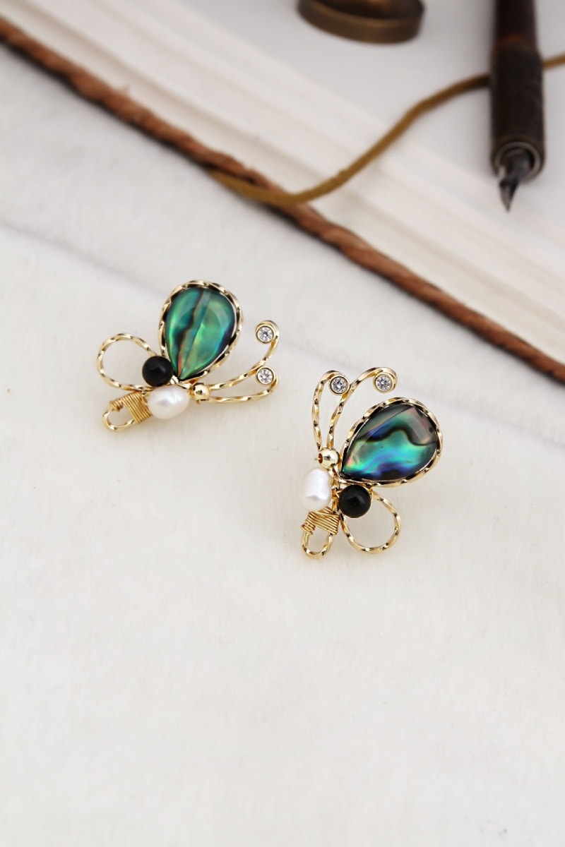 Brincos - Banhado a ouro amarelo, labradorites e pérolas de cultura