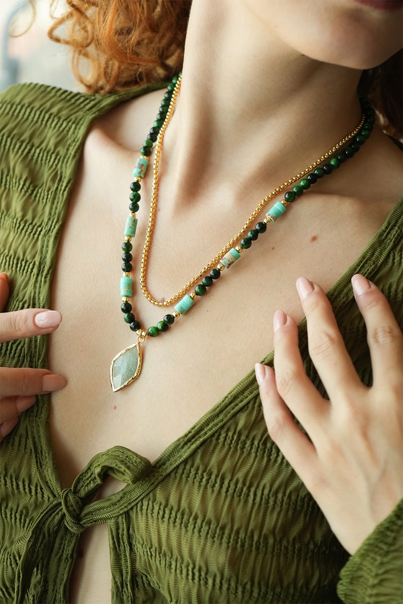Colar 2 fileiras - Amazonites e olhos-de-tigre