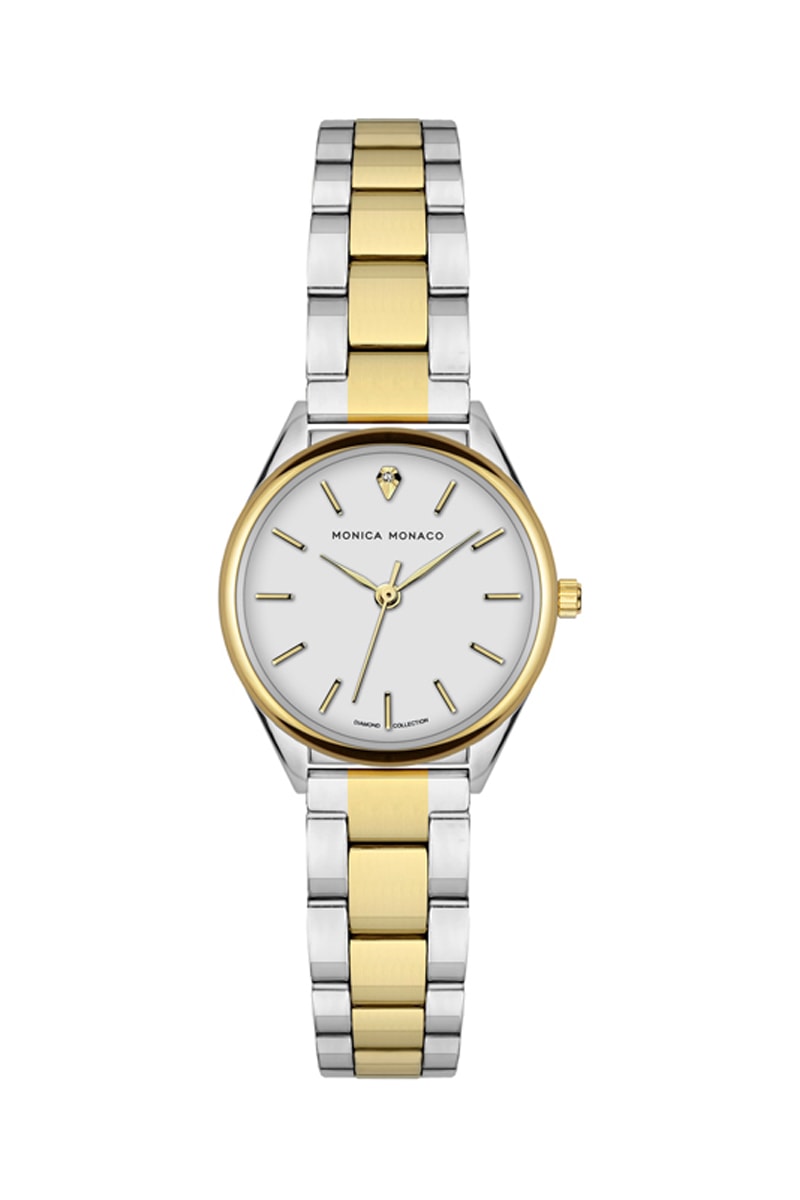 Relógio de quartzo em aço e diamante - Dourado e prateado
