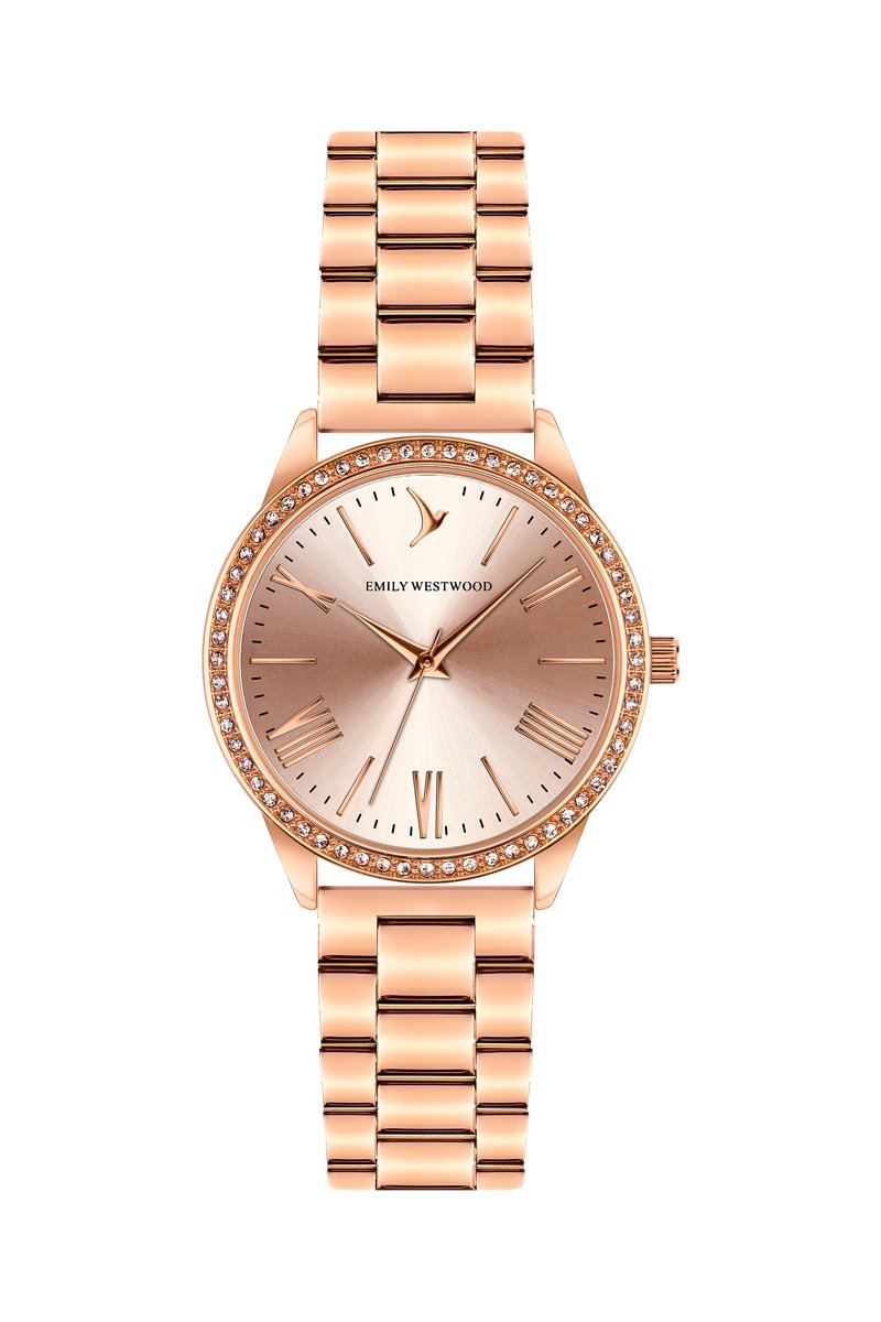 Relógio de quartzo em aço - Dourado-rosa - Emily Westwood