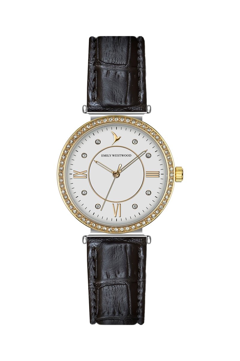 Relógio de quartzo em couro - Preto e dourado - Victoria Walls