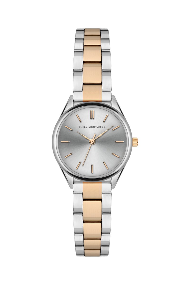 Relógio de quartzo em aço inoxidável - Prateado e dourado-rosa - Emily Westwood