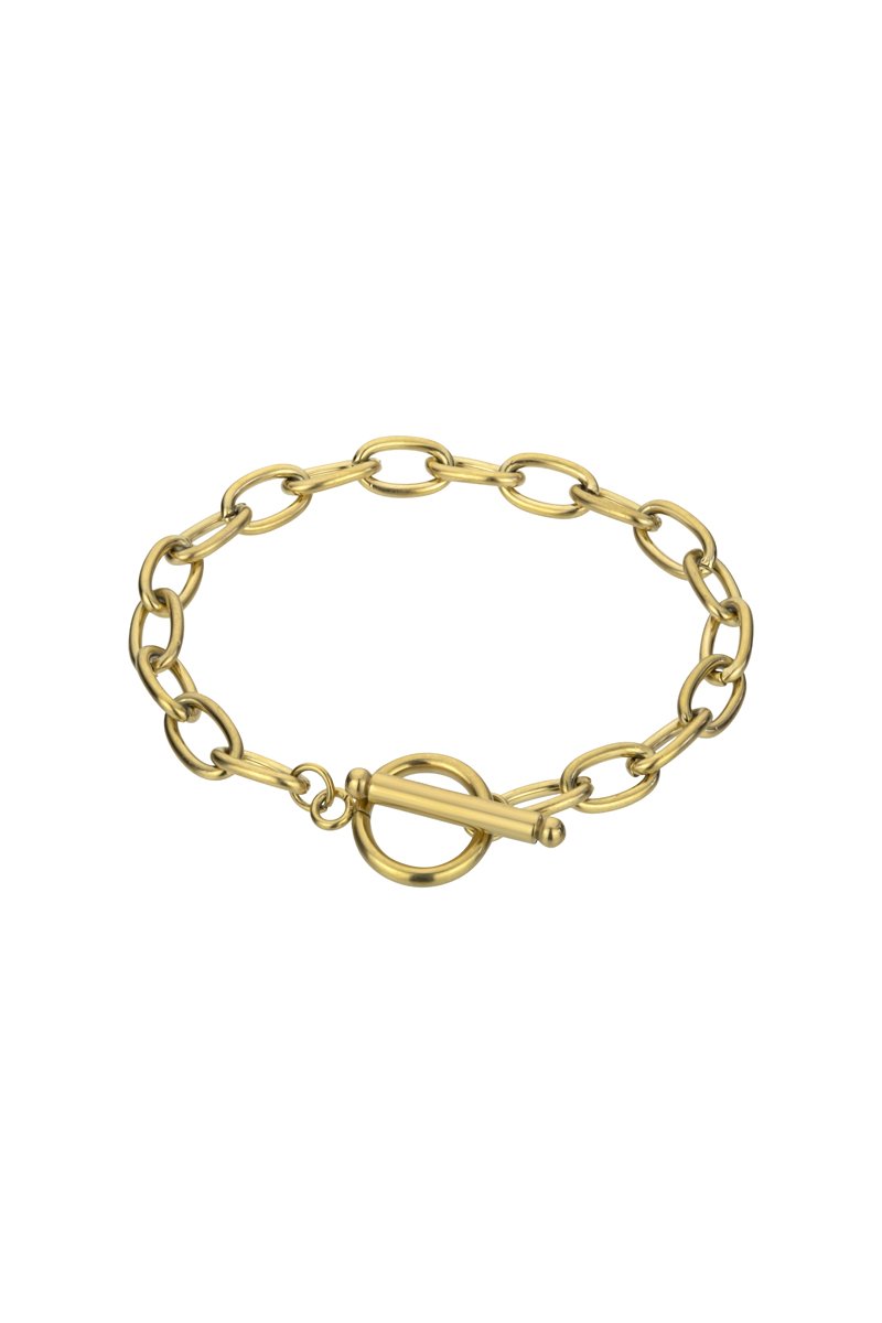 Composição: aço inoxidável banhado a ouro amarelo 18 quilates