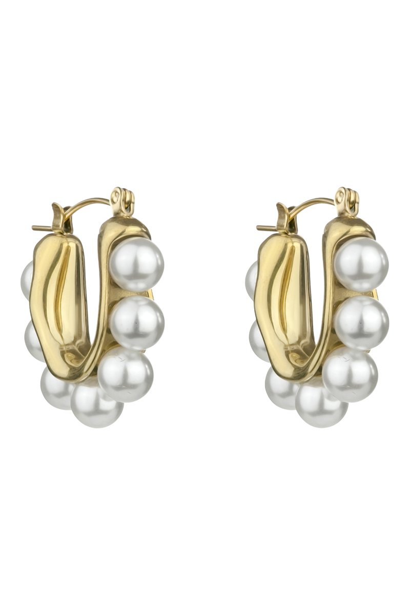 Argolas banhadas a ouro amarelo com pérolas de imitação.