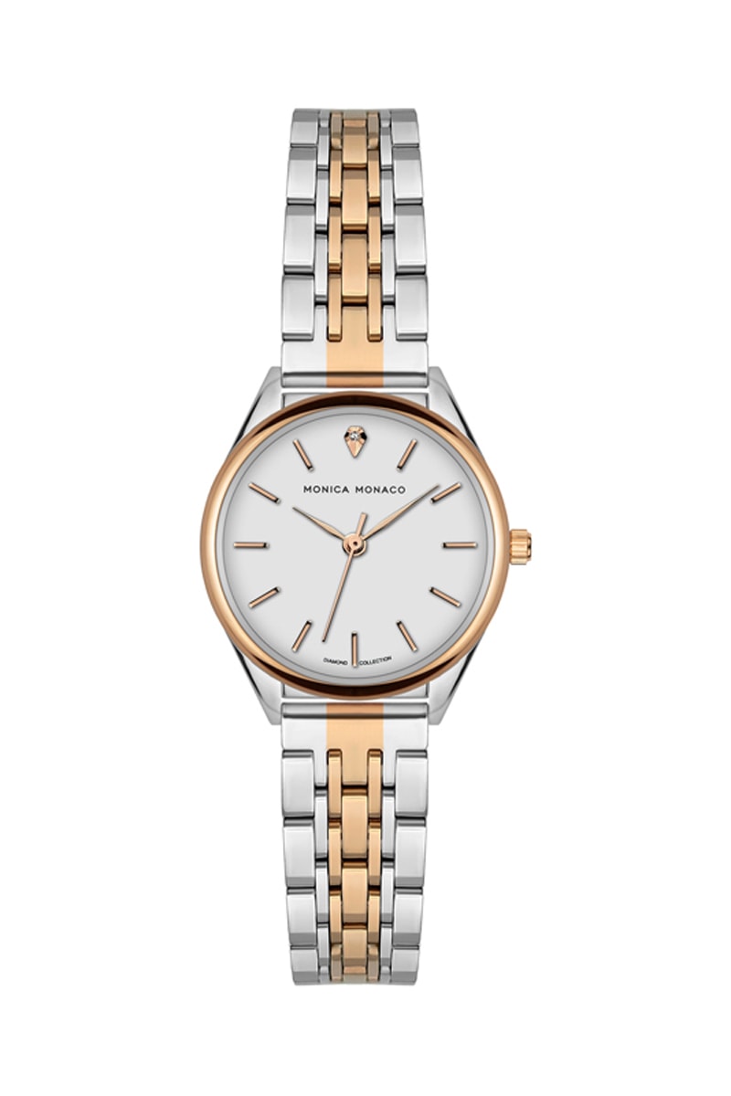 Relógio de quartzo em aço e diamante - Dourado-rosa e prateado