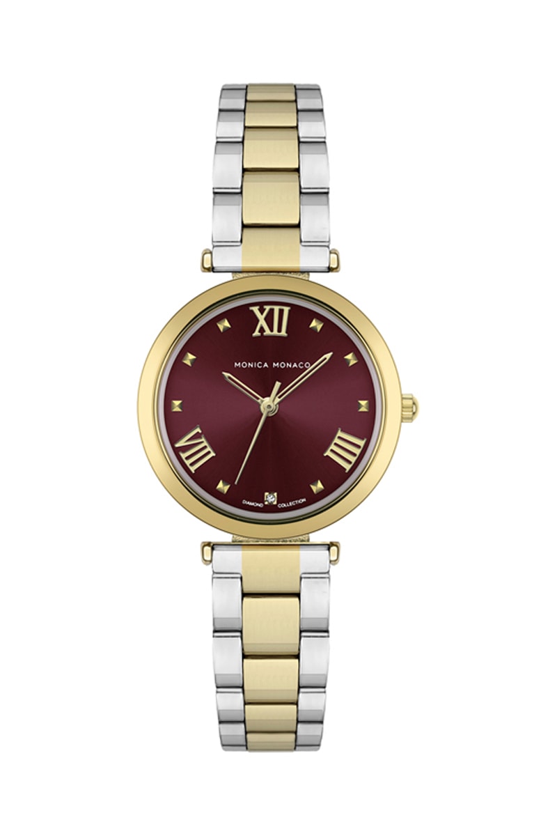 Relógio de quartzo em aço e diamante - Prateado e dourado - Monica Monaco