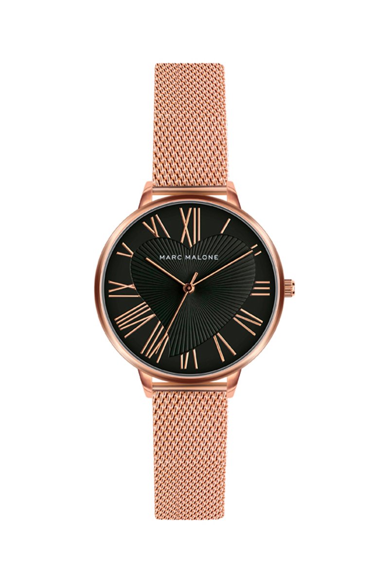 Relógio de quartzo em aço e banhado a íon ouro-rosa Theresa - Dourado rosa e preto - Marc Malone