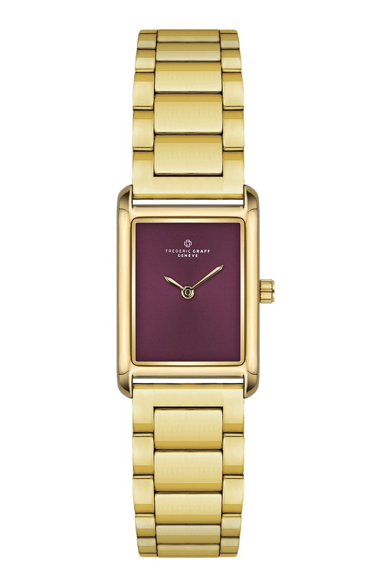 Relógio de quartzo em aço - Dourado e bordô - Frederic Graff