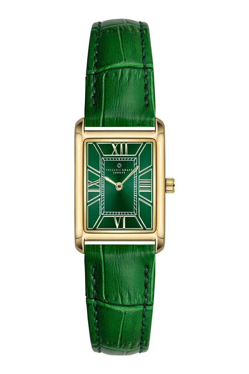 Relógio de quartzo em couro - Verde e dourado - Frederic Graff