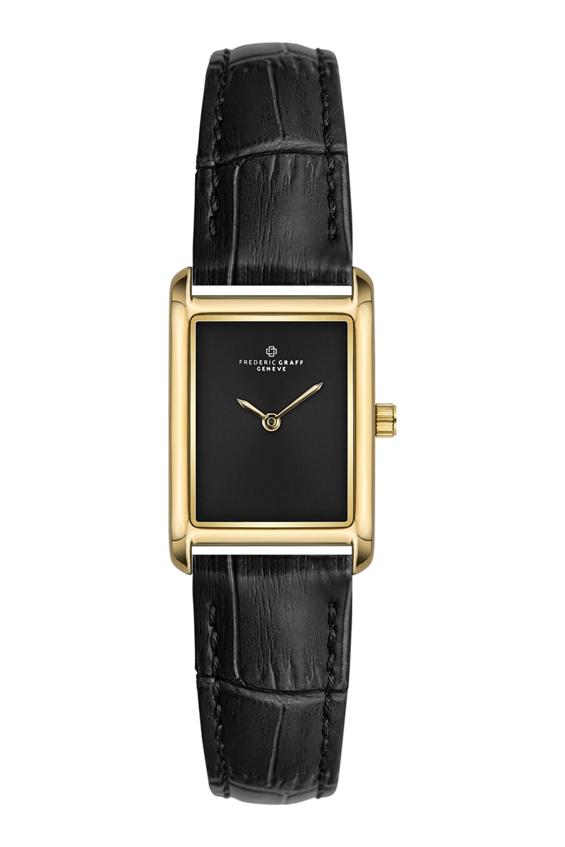 Relógio de quartzo em couro - Preto e dourado - Frederic Graff