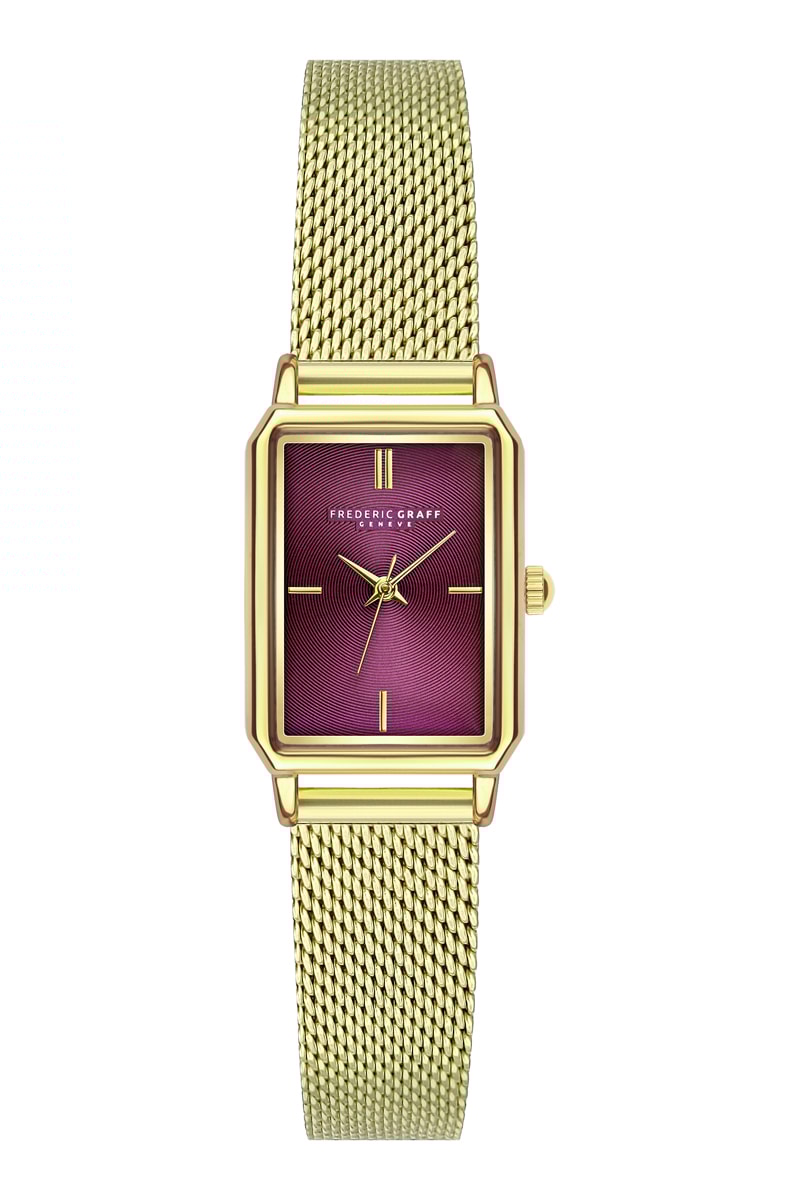 Relógio de quartzo em aço - Dourado e bordô - Frederic Graff