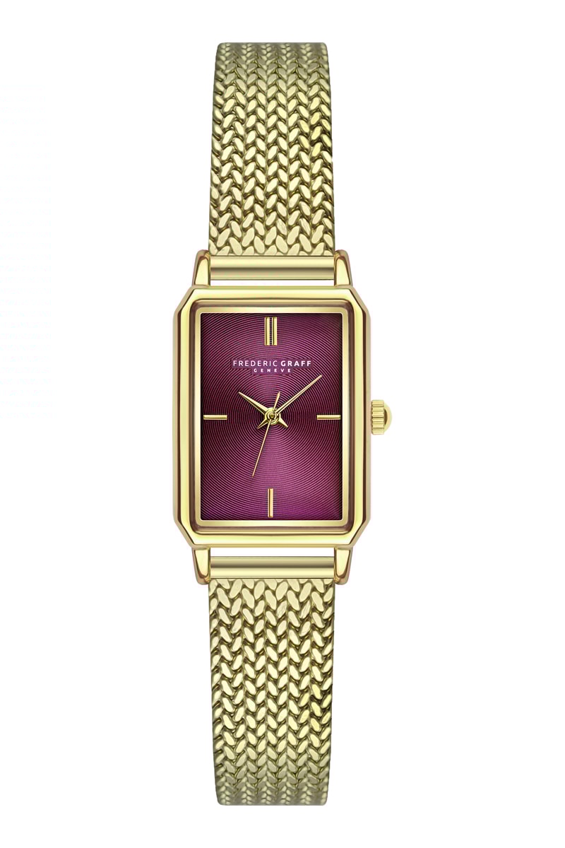 Relógio de quartzo em aço - Dourado e bordô - Frederic Graff
