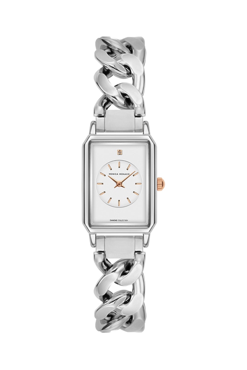 Relógio de quartzo em aço e diamante - Prateado e dourado-rosa