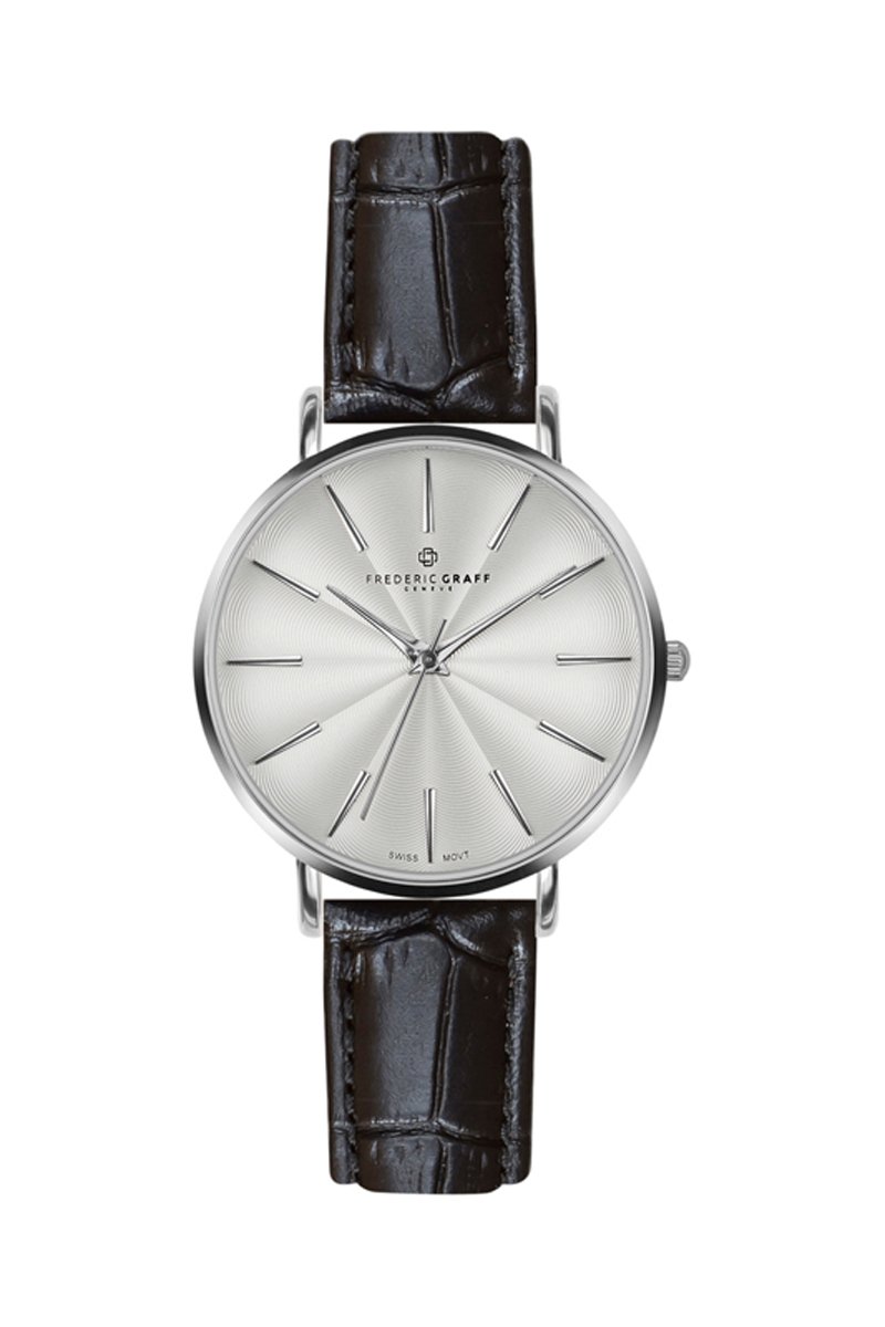 Relógio de quartzo em couro - Preto e prateado - Frederic Graff