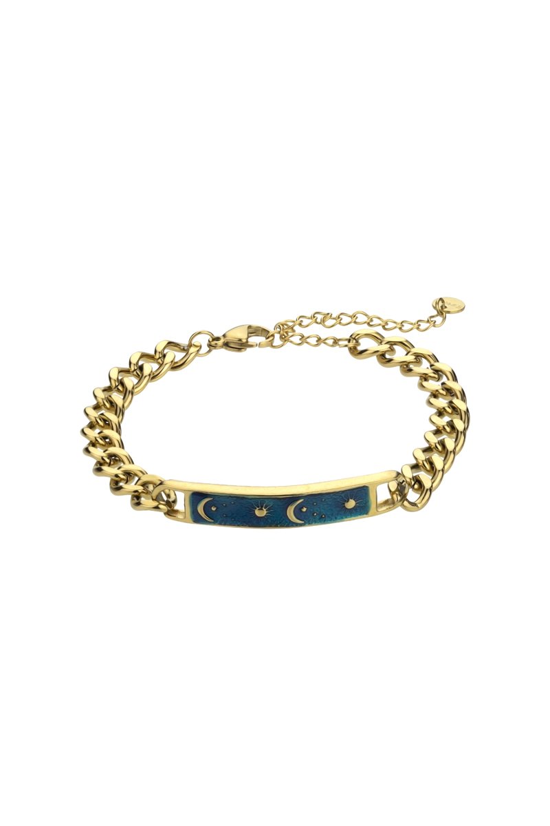 Composição: aço inoxidável banhado a ião amarelo e esmalte