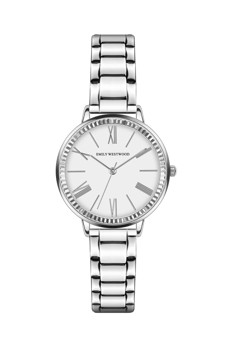 Relógio de quartzo em aço - Prateado e branco - Emily Westwood