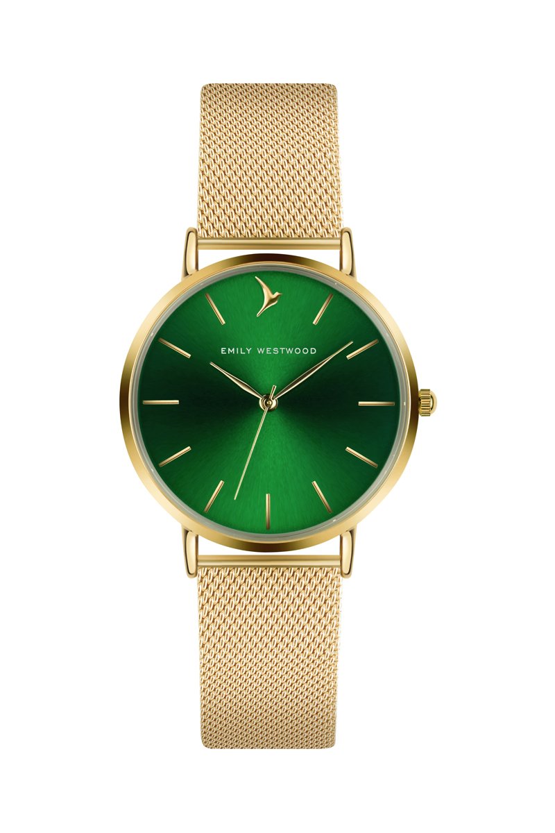 Relógio de quartzo em aço - Dourado e verde - Emily Westwood
