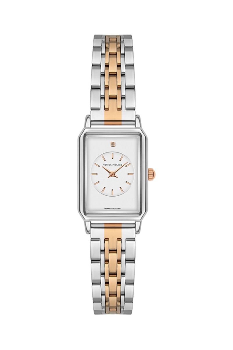 Relógio de quartzo em aço e diamante - Dourado-rosa e prateado