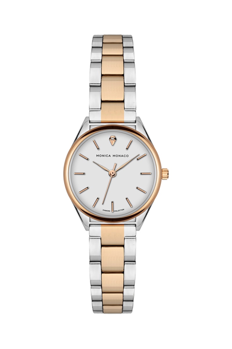 Relógio de quartzo em aço e diamante - Dourado-rosa e prateado