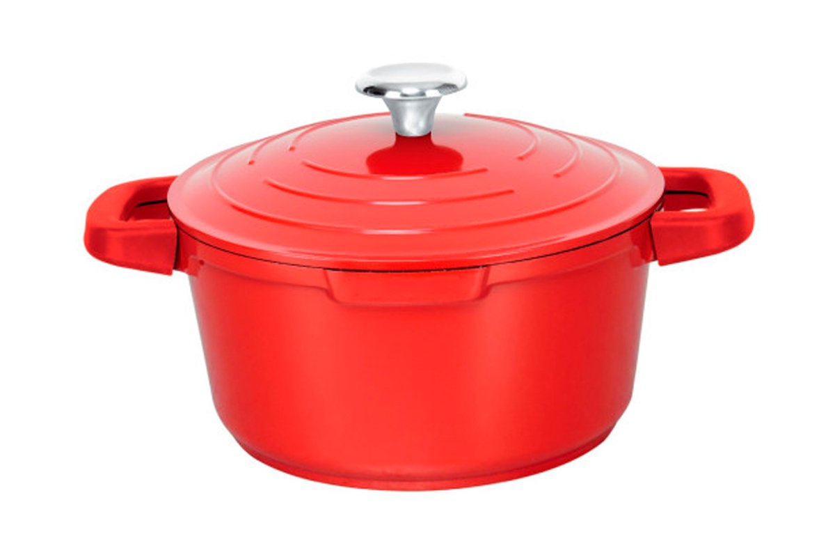 Panela de alumínio fundido com tampa.