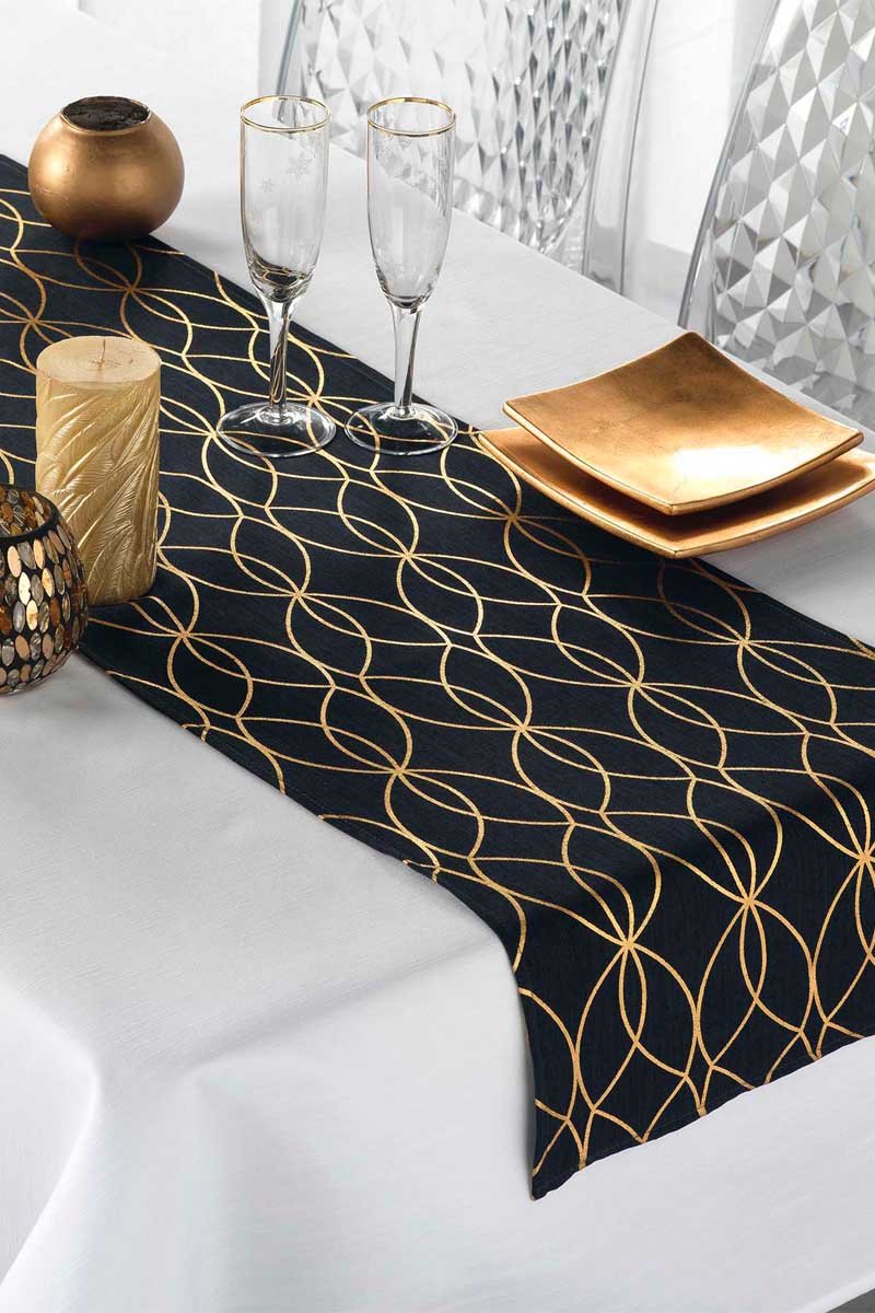 Toalha com caminho de mesa Elipsa - Branco, preto e dourado