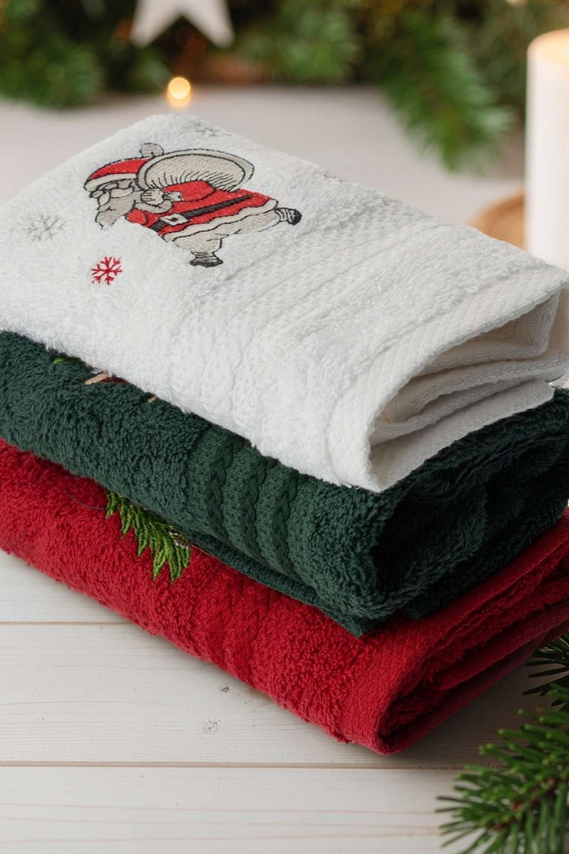 3 toalhas de rosto - Vermelho e verde - 30 x 50 cm