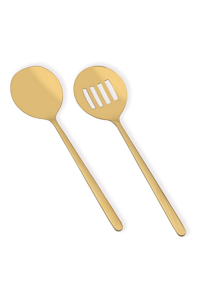 Talheres de molho em aço inoxidável com uma colher e um passador.