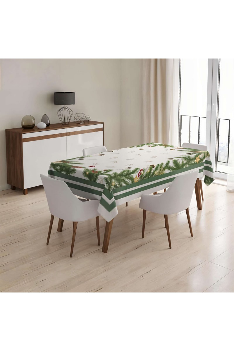 Toalha de mesa retangular - Branco e verde-escuro - 160 x 220 cm