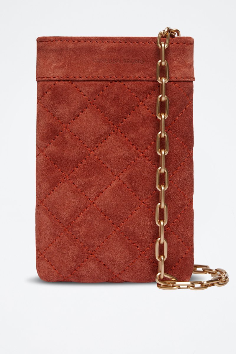 Bolsa para telemóvel em couro de vitelo nobuck.