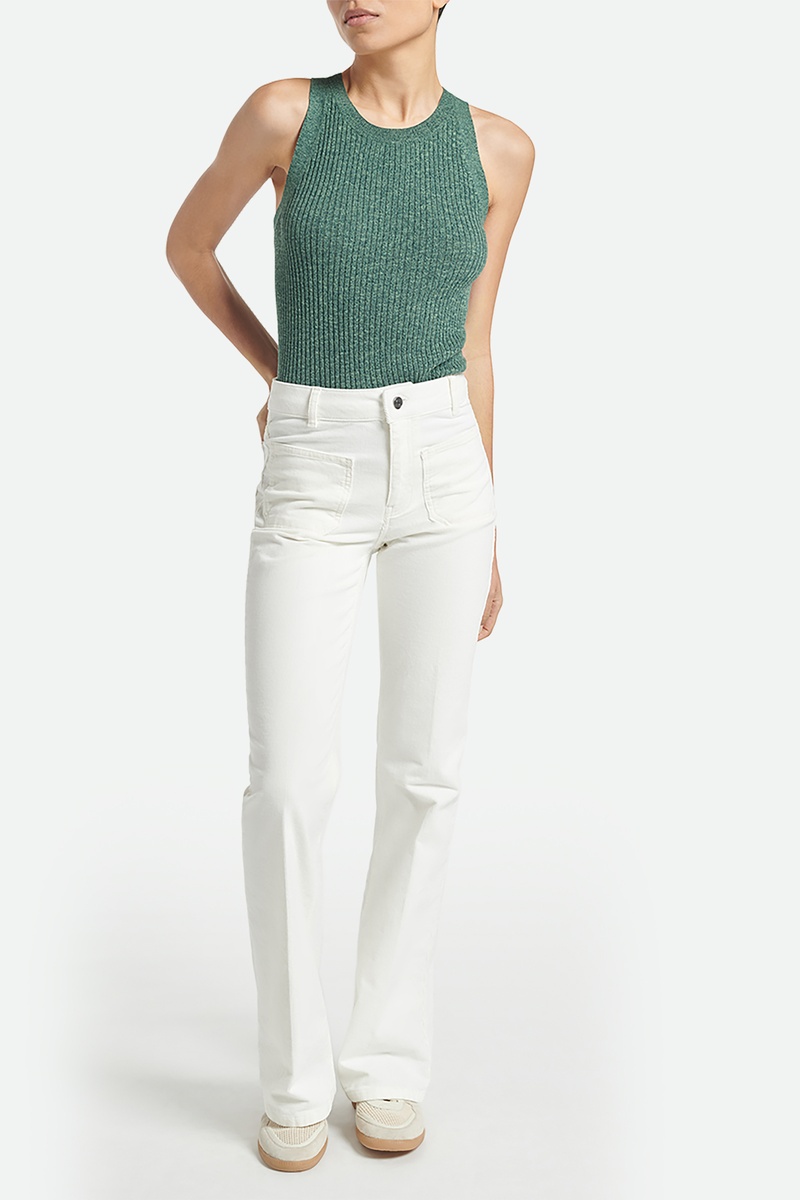 Calças flare em veludo de cintura subida Dompay - Cru